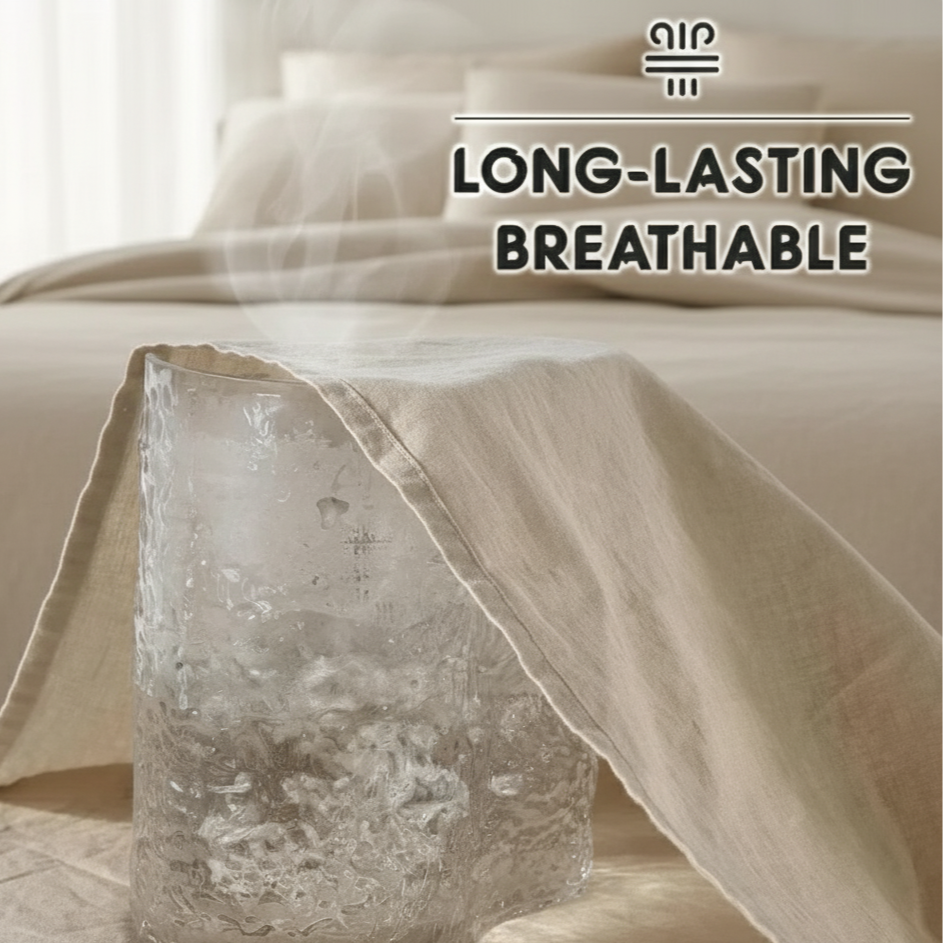 Linen is naturally breathable, moisture-wicking, and temperature-regulating. It keeps you cool in the summer and cozy in the winter, making it a year-round bedding choice. It’s also hypoallergenic and free from microplastics.